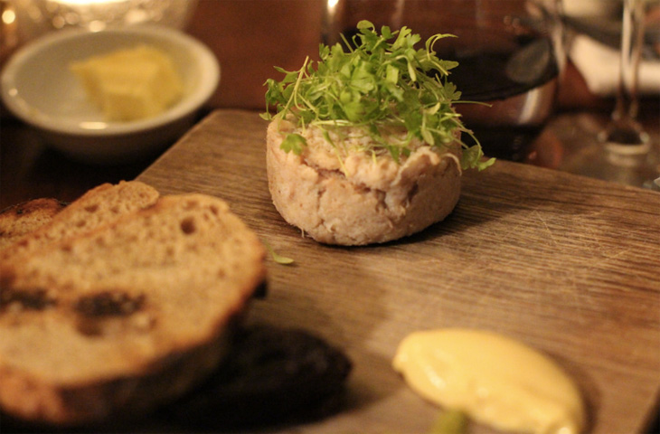 Разложить рийет в банки, стараясь оставить как можно меньше воздуха между слоями. Сверху положить несколько ложек зарезервированного жира. Убрать на холод, чтобы масса затвердела, по крайней мере на 2 часа. Подавать с жареным хлебом.
