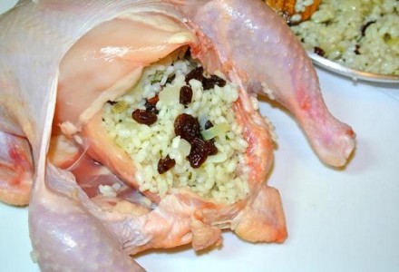 Как приготовить цыплёнка, фаршированного рисом и изюмом в духовке