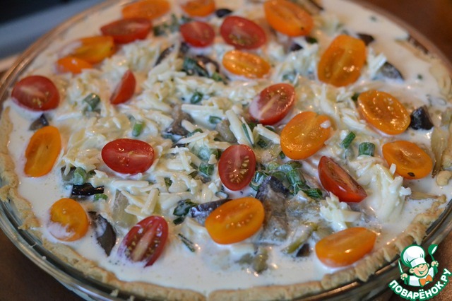 Затем бумагу с фасолью снять с теста, температуру духовки снизить на 180гр.