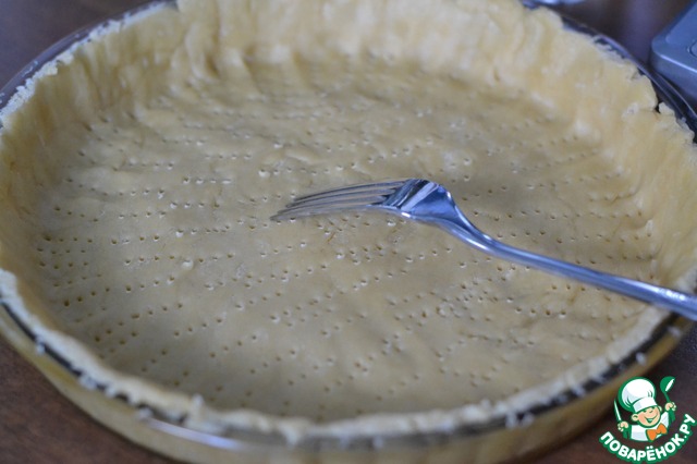 Распределить тесто по дну и бокам формы, формируя бортики.