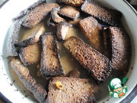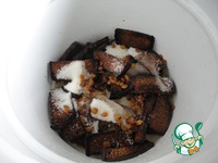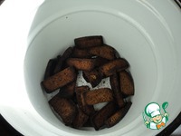 Очень важный момент — засушить нужно до легкого подгорания. Не совсем в угли, но чернота на кусочках должна быть. Это дает вкус и цвет будущему квасу.