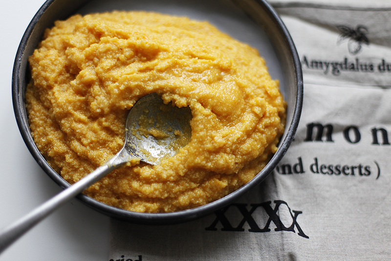 Сложите в миску и обработайте блендером в гладкое и мягкое пюре.