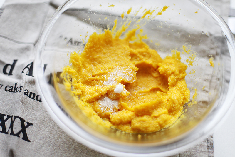 Сразу хочу предупредить — варить мандарины надо долго, часа полтора. Потому что в итоге надо получить гладкое и нежное пюре, если варить меньше — шкурка будет твердой и в пироге будут комочки.
