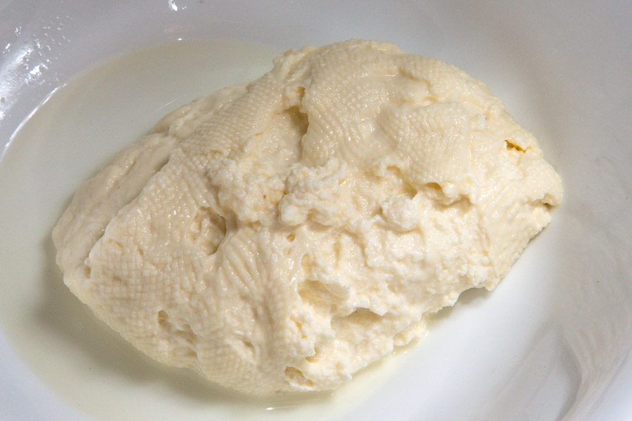 Теперь нужно отделить получившиеся комочки от сыворотки. Для этого либо выливаем все из кастрюли через сито (комочки останутся в сите, а сыворотка пропала), либо перекладываем комочки в сито шумовкой. Для меня подходит второй вариант, т.к. сыворотку и храню в холодильнике и пеку на ней хлеб и готовлю окрошку 😉