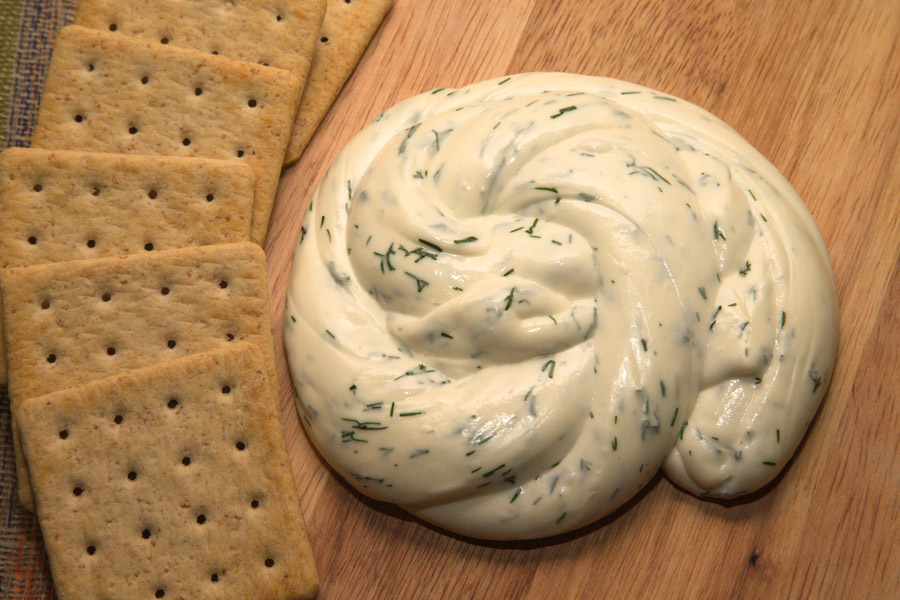 Замешиваем в массу мелко нарезанный укроп (или базилик, или другие травы, или ничего не замешиваем 😉 кому как нравится) и соль.