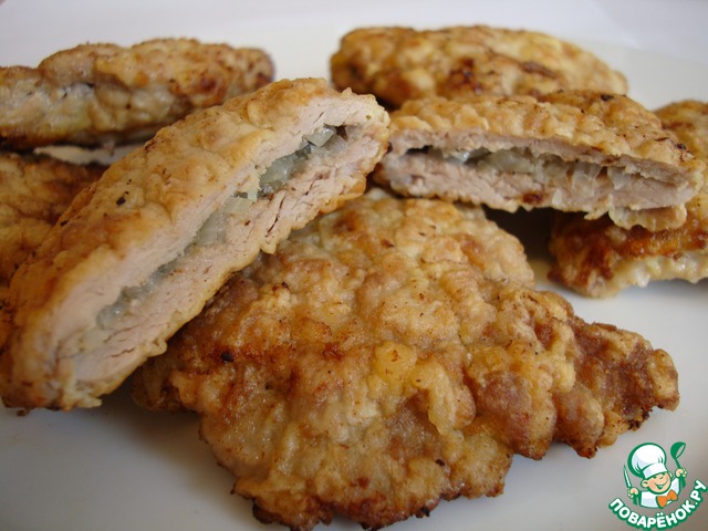 Свиная вырезка сама по себе очень нежная. Сливочное масло добавляет сочности. А кляр удерживает все соки внутри «кармашка».