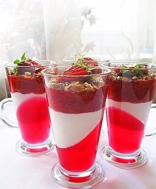 Заливаем желе кипятком и разливаем по высоким стаканам.