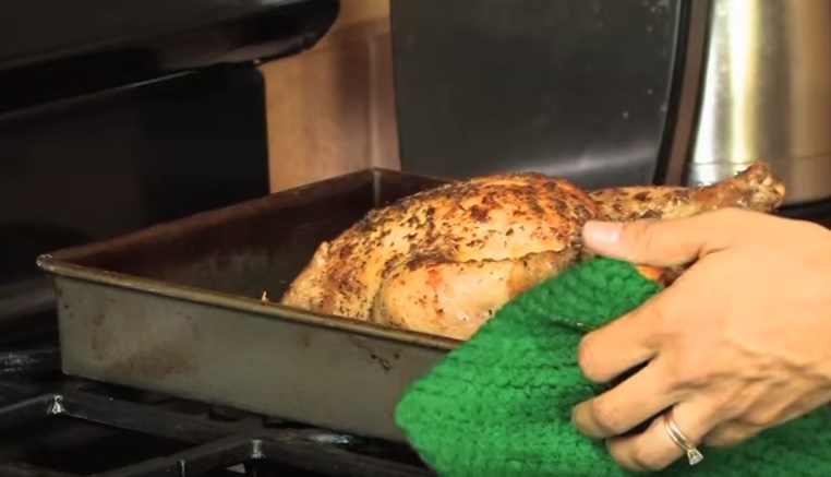 - Минимальная температура внутри тушки при ее запекании должна быть 74 градуса. Для того чтобы в этом убедиться необходим кухонный градусник.