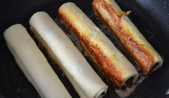 Обжарьте по-быстрому в небольшом количестве масла со всех сторон. Выложите трубочки на бумажную салфетку.