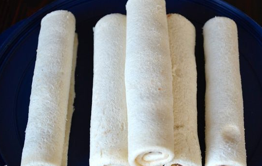 Хлеб берите для тостов. Отрезайте корочки и раскатывайте каждый ломтик скалкой.