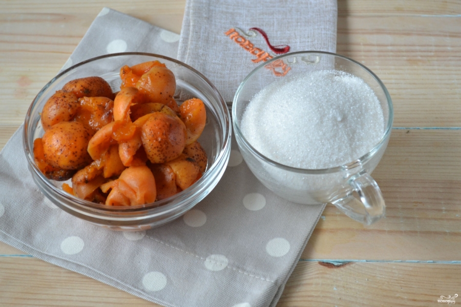 Подготовьте все необходимые ингредиенты. Абрикосы промойте, удалите косточки. Для повидла советую брать спелые, я бы даже сказала, переспевшие, фрукты, тогда консистенция повидла получится очень нежной.