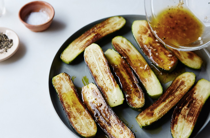 Перед подачей на стол оставить цукини мариноваться при комнатной температуре в течение 1-го часа или убрать в холодильник и забыть про них на пару часов.