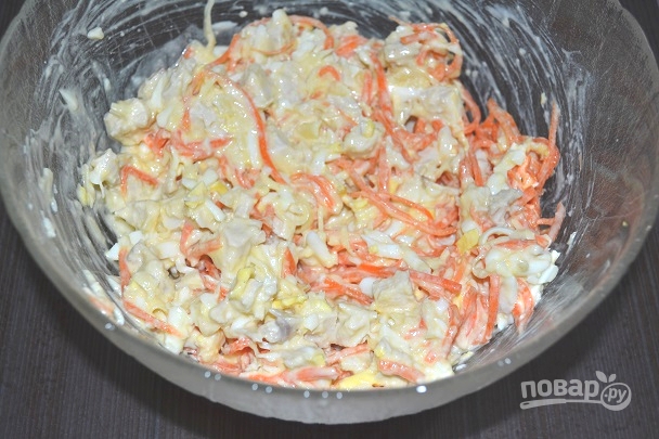 8. Добавьте майонез по вкусу, перемешайте.