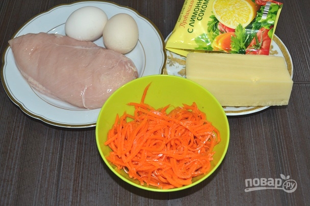 Если вам по душе несложные салатики, для разнообразия рекомендую приготовить «Бонито». Сочетание курочки, сыра, яйца и моркови по-корейски точно не оставит вас равнодушными. Попробуйте обязательно!