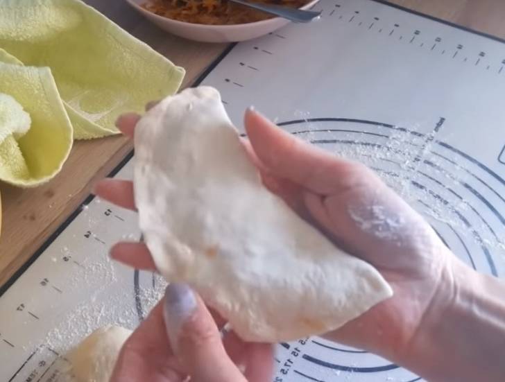 - Дальше по классике: делаем пирожочки и жарим их в масле (его должно быть столько, чтобы пирожочки полностью погружались внутрь).