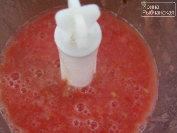 - Измельчить в блендере баклажаны, перец и кабачки.